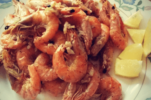 Жареные королевские креветки с чесноком