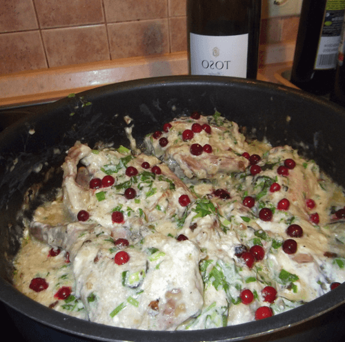 Тушеный кролик в винно-лимонном маринаде с брусникой