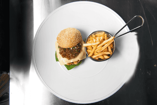 Бургер с семгой – это гармония насыщенного вкуса и текстур. Его история начинается с американской классики, но в этом исполнении он приобретает особую изысканность благодаря благородной красной рыбе. Сочная котлета из семги, дополненная легкой остротой майонеза чипотле и свежестью томатной сальсы, создаёт богатый и многогранный вкус. Копченая паприка и вустерширский соус придают мясу глубокий аромат, а сыр ярлсберг плавно смягчает его насыщенность. Булочка, слегка пропитанная пикантным соусом, держит все ингредиенты в совершенном балансе. Этот бургер можно подать с картофелем фри для классического фастфуд-опыта или наслаждаться им как самостоятельным блюдом, раскрывающим всю палитру вкусов американской кухни в необычном прочтении.