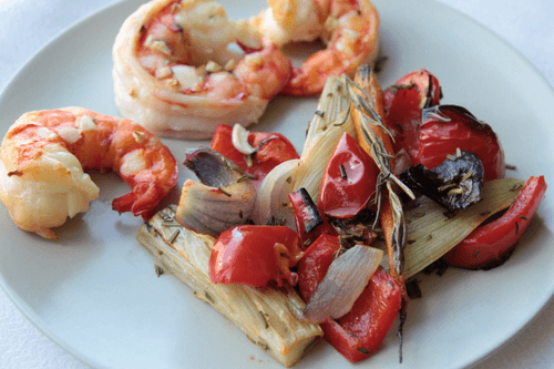 Креветки с запеченными овощами – это изысканное блюдо европейской кухни, где морской вкус сочных королевских креветок гармонично сочетается с ароматом запеченных овощей и трав. Это блюдо напоминает средиземноморские кулинарные традиции, где свежесть продуктов и простота приготовления играют ключевую роль. Запеченные морковь, фенхель, красный сладкий перец и помидоры приобретают насыщенный вкус, подчеркнутый тимьяном и розмарином. Легкий чесночный оттенок и пикантность красного перца придают этому блюду особую глубину вкуса. Идеально подходит как для праздничного ужина, так и для уютного семейного застолья, оно прекрасно сочетается с белым вином и свежим хлебом. Это гастрономическое наслаждение дарит тепло и яркость средиземноморской кухни в каждом кусочке.