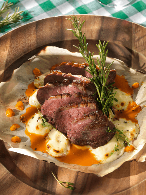 Утиная грудка с адыгейским сыром — это изысканное блюдо, объединяющее нежность утиного мяса с мягкостью и сливочным вкусом адыгейского сыра. Соус из облепихи, меда и белого портвейна добавляет кисло-сладкие ноты, которые прекрасно дополняют сочность мяса. Это блюдо имеет корни в русской кухне, где ценится гармония вкусов и натуральные ингредиенты. Утиная грудка готовится с ароматными травами, такими как розмарин и шалфей, которые подчеркивают её насыщенный вкус. Расплавленный адыгейский сыр делает блюдо особенно уютным и согревающим. Такой рецепт идеально подойдет для праздничного ужина или романтического вечера, создавая атмосферу уюта и изысканности на столе.