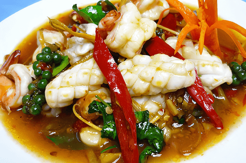 Пад Ча Талэй — это яркое и ароматное блюдо индийской кухни, воплощающее в себе страсть к специям и свежести морепродуктов. Его корни уходят в восточную Азию, где подобные стир-фрай рецепты украшают столы в многочисленных прибрежных районах. Нежные креветки, кальмары и рыба, обжаренные в пряном соусе с чесноком, чили и травами, раскрывают глубокий, насыщенный вкус моря, дополненный тонкими цитрусовыми нотками кафрского лайма. Острота перца гармонирует со сладостью чили и сбалансированной соленостью рыбного соуса, создавая взрывной вкусовой ансамбль. Это блюдо можно подавать как с рисом, так и с стеклянной лапшой, позволяя каждому наслаждаться его пряной насыщенностью в своем стиле. Оно идеально для любителей экзотических и насыщенных вкусов.