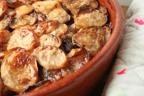 Спустя 1,5 часа снимите крышку и увеличьте температуру до максимальной для того, чтобы картофель стал коричневого цвета, и образовалась корочка.