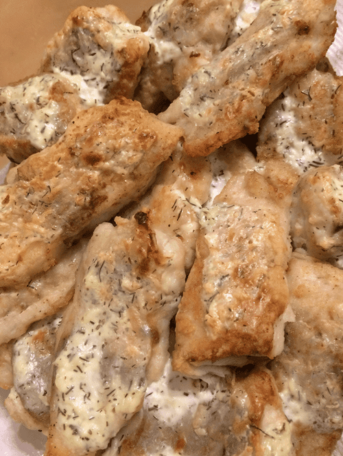Минтай под сметанно-чесночным соусом – это нежное и ароматное блюдо европейской кухни, которое сочетает в себе простоту и насыщенный вкус. Минтай, обжаренный до золотистой корочки, приобретает мягкость благодаря сметанно-чесночному соусу с добавлением майонеза и свежего укропа. Легкая пикантность чеснока дополняется освежающим лимонным соком, создавая сбалансированный вкусовой профиль. Это блюдо идеально подходит для семейных ужинов, праздничных застолий и легких обедов, особенно в сочетании со свежими овощами или картофельным гарниром. Оно напоминает классические блюда русской и французской кухни, где сливочные соусы подчеркивают естественный вкус рыбы. Минтай под сметанно-чесночным соусом – простое в приготовлении, но удивительно изысканное блюдо, которое согревает душу и радует вкусовые рецепторы.