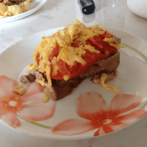 Свинина, запечённая с грибами и помидорами — это блюдо, которое восхищает своим насыщенным вкусом и аппетитным ароматом. Идеальное сочетание нежного мяса, сочных грибов и сладких томатов создаёт гармонию вкусов, которая раскрывается в процессе запекания. Родиной подобных мясных запеканок можно считать европейскую кухню, где традиционно используются натуральные специи и свежие продукты для достижения баланса вкусов. Приготовленное в духовке мясо остаётся сочным благодаря томатам, а грибы придают блюду глубину и насыщенность. Завершающий штрих — плавленый сыр, который образует золотистую корочку, делая блюдо не только вкусным, но и эстетически привлекательным. Это угощение идеально подойдёт для уютного семейного ужина или праздничного застолья, особенно в сочетании с бокалом красного вина и свежими травами.
