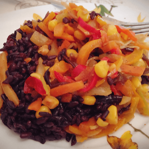Черный рис с китайской заправкой — это гармоничное сочетание восточных и европейских кулинарных традиций. Императорский черный рис, известный своим богатым ореховым вкусом и легкой сладостью, в этом блюде прекрасно дополняется яркими овощами, сладковатыми ананасами и нежной кукурузой. Пряные нотки молотого имбиря, паприки и смеси перцев добавляют глубину вкуса, а соевый соус объединяет ингредиенты в единую композицию. Такое блюдо может стать отличным гарниром или легким основным блюдом, а добавление готового китайского соуса придаст ему дополнительную насыщенность. Исторически черный рис был привилегией китайской знати, и сегодня он остается выбором для ценителей полезного и вкусного питания. Наслаждайтесь этим экзотическим, ароматным и питательным блюдом!