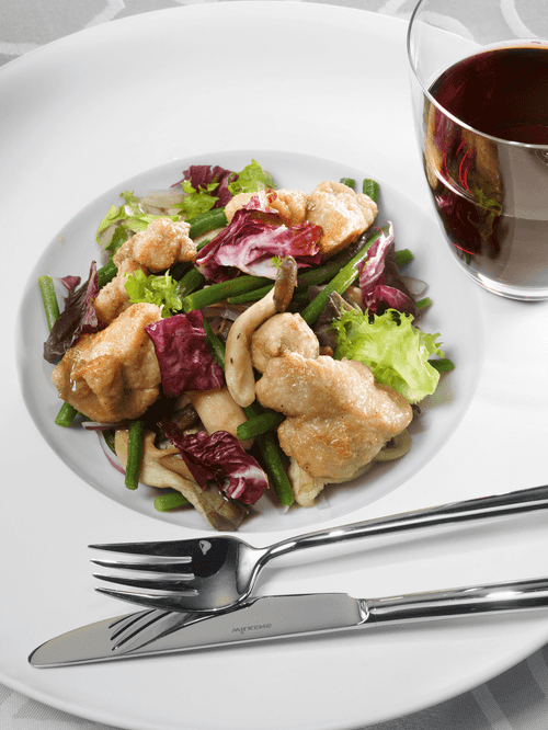 Зобная железа с вешенками и зеленой фасолью – это изысканное блюдо французской кухни, которое сочетает в себе нежность субпродуктов и аромат лесных грибов. Исторически зобная железа считалась деликатесом, особенно в гастрономии Франции, где ее умело готовили, раскрывая богатство вкуса. Нежные ломтики железы, обжаренные до золотистой корочки, приобретают бархатистую текстуру, а добавление белого вина и куриного бульона обогащает блюдо мягкими нюансами. Вешенки привносят легкую ореховую нотку, а зеленая фасоль добавляет свежести и хрусткости. Это блюдо идеально сочетается с бокалом сухого белого вина и подается как основное угощение на торжественном ужине, подчеркивая мастерство французской кулинарии.