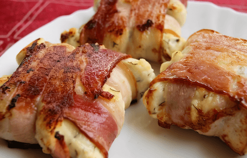 Каждый шарик обернуть со всех сторон беконом (как конверт).