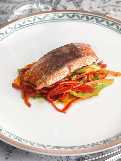 Лосось с острым перцем, зеленым луком и морковью — это яркое и пряное блюдо, которое сочетает нежность рыбы с пикантностью свежих овощей. Вдохновленный русскими кулинарными традициями, этот рецепт объединяет насыщенные ароматы медового маринада и свежесть лимонной цедры. Лосось, пропитанный ароматным соевым соусом и винным уксусом, запекается до совершенства, оставаясь сочным внутри. Овощной гарнир, обжаренный на кунжутном масле, придает блюду восточную нотку, а перец чили добавляет лёгкую остроту, пробуждая вкусовые рецепторы. Это блюдо идеально подойдет для праздничного ужина или уютного семейного вечера, наполняя дом теплом и аппетитными ароматами. Лосось богат омега-3 кислотами, а овощи — витаминами, делая этот рецепт не только вкусным, но и полезным для здоровья.