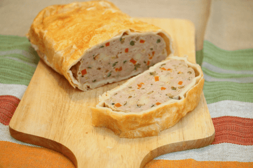 Мясной рулет в слоеном тесте — это изысканное блюдо европейской кухни, сочетающее в себе нежность фарша из индейки и хрустящее тесто. Его корни уходят в традиции домашней выпечки, где мясо запекалось в тесте для сохранения сочности и насыщенного вкуса. Начинка из овощей, включая морковь, лук, сельдерей и цукини, придает рулету легкость и богатый аромат, а специи дополняют его вкус тонкими пикантными нотками. Золотистая корочка слоеного теста делает рулет не только аппетитным, но и идеальным для праздничного стола. Блюдо прекрасно сочетается с легкими соусами, свежими салатами и бокалом красного вина. Оно подойдет как для торжественного ужина, так и для уютного семейного застолья, оставляя незабываемые впечатления своим гармоничным вкусом.