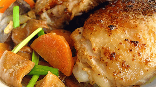 Запеченные куриные бедрышки в кефирном соусе с морковью