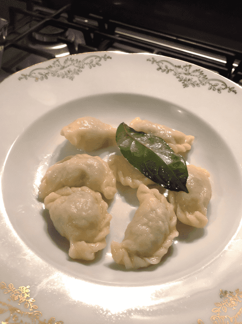 Получившиеся пельмени забросить в кипящую подсоленную воду, добавить лавровый лист и перец горошком для аромата и варить до готовности, пока они не всплывут на поверхность (5–7 минут).