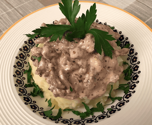 Говядина «Строганов» (Boeuf Stroganoff)