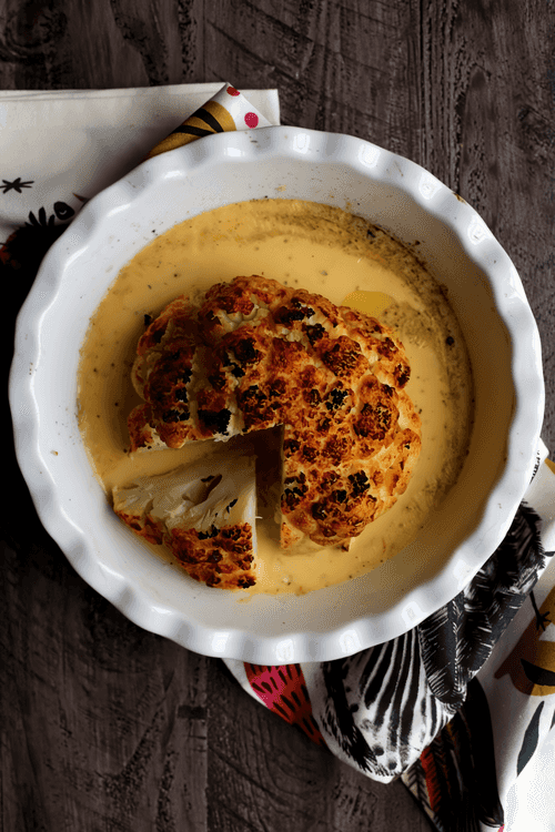 Запеченная целиком цветная капуста в сырно-пивном соусе