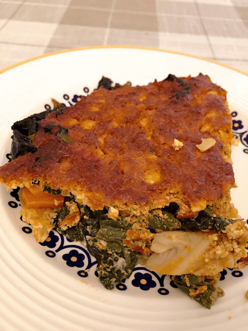 Овощная запеканка с творогом и томатным соусом