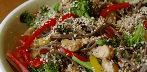 Соба с курицей и овощами — это яркое воплощение японской кулинарной традиции, в которой сочетаются нежное куриное филе, ароматный соевый соус и свежие овощи. Лапша соба, изготовленная из гречневой муки, придаёт блюду характерный ореховый вкус и делает его не только вкусным, но и полезным. Этот рецепт является отличным примером баланса между нежным мясом, хрустящими овощами и глубокими умами-нотами соевого соуса. Блюдо можно подавать как горячим, так и холодным, что делает его универсальным выбором для любого сезона. Лёгкость приготовления и насыщенность вкусов делают его идеальным вариантом для любителей японской кухни, желающих попробовать нечто традиционное, но в то же время простое и доступное.