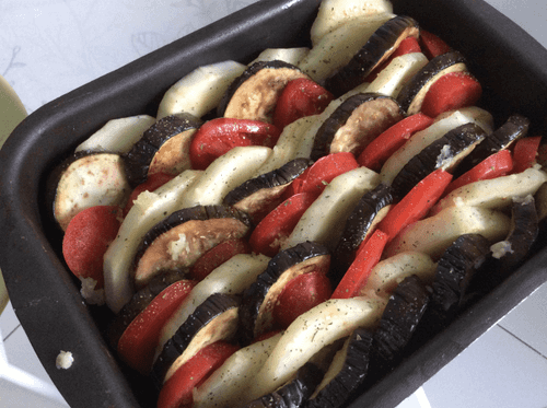 Залить молочно-сырной смесью овощи и отправить в разогретую духовку на 25 минут.
