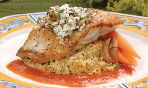 Белопятнистый групер по-гречески — это гармония средиземноморских вкусов, заключенная в каждом кусочке нежного филе. Этот рецепт уходит корнями в традиции греческой кухни, где свежие морепродукты сочетаются с ароматными специями и травами. Рыба, обжаренная до золотистой корочки, медленно тушится в насыщенном соусе из томатов, вина и лимонного сока, приобретая невероятную глубину вкуса. Добавление корицы и тимьяна придает блюду утонченную пряность, а завершающий штрих — фета и грецкие орехи — создают изысканный контраст текстур. Такое блюдо идеально сочетается с бокалом белого вина и свежими овощами, превращая трапезу в настоящее гастрономическое путешествие по солнечной Греции.