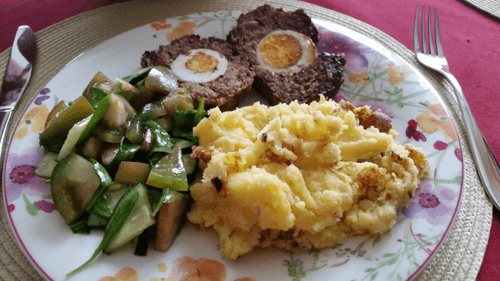 Сделать выемку и друг за другом выложить 2 вареных яйца и хорошо залепить.