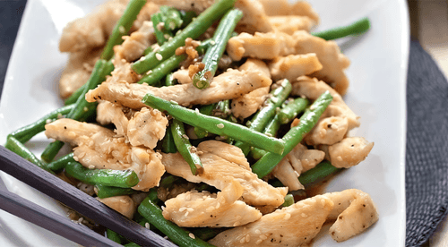 У фасоли отрежьте кончики при помощи ножниц. Если есть жесткая «струнка», удалите ее. Добавьте фасоль в сковороду, готовьте под крышкой еще 15 мин.