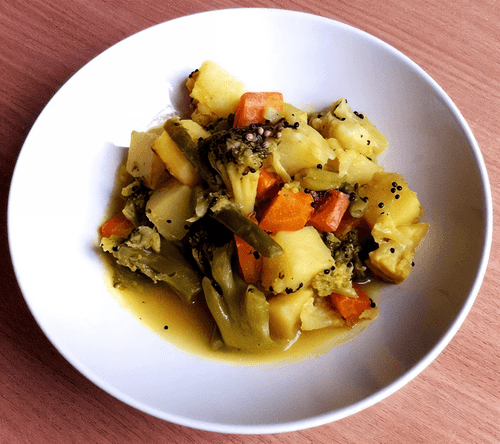 Сабджи – это традиционное индийское овощное рагу, пропитанное ароматами специй и теплом домашнего очага. Это блюдо, корнями уходящее в глубину индийской кулинарной культуры, является ярким примером гармонии простых овощей и насыщенных специй. Нежные кусочки картофеля, моркови, брокколи и цветной капусты томятся в смеси куркумы, зиры и горчицы, создавая мягкую, но насыщенную текстуру. Сабджи обладает богатым пряным вкусом с легкой сладостью моркови и землистыми нотами картофеля. Оно идеально сочетается с рисом или лепешками и служит не только сытным блюдом, но и настоящим гастрономическим путешествием в сердце Индии. Медленное тушение позволяет овощам раскрыть свои вкусовые оттенки, превращая каждую ложку в нежное наслаждение. Это не просто еда, а часть древней традиции наслаждения простыми и полезными блюдами.