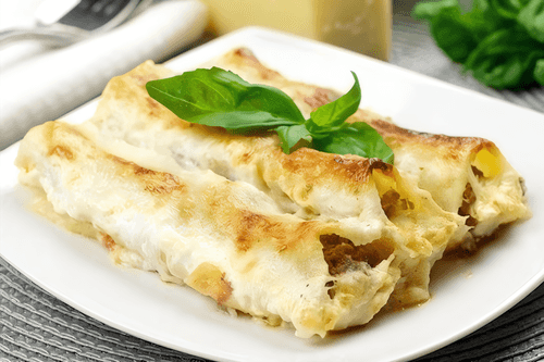 Каннеллони, начиненные фаршем, под соусом бешамель
