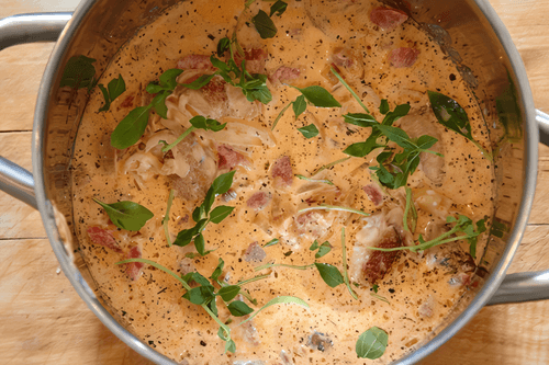 Курица, тушенная в томатно-сливочном соусе