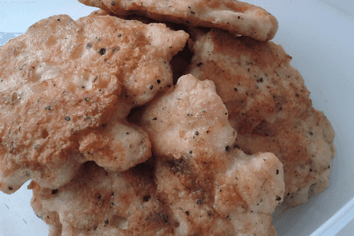 На разогретую с маслом сковородку ложкой выкладывайте получившуюся куриную массу.
