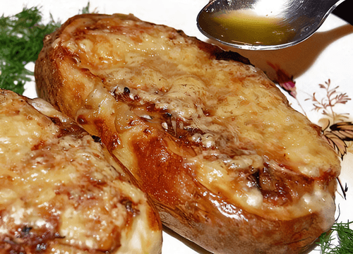 Запекать жульен в картофеле около 30 минут, до золотистой корочки. Готовый фаршированный картофель можно посыпать свежей зеленью.