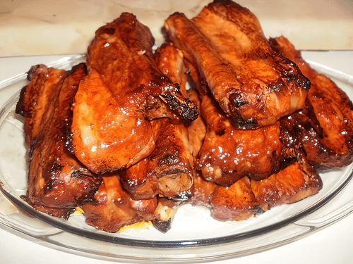 Ребрышки смазать соусом с помощью кулинарной кисти и оставить мариноваться на 1–2 часа.