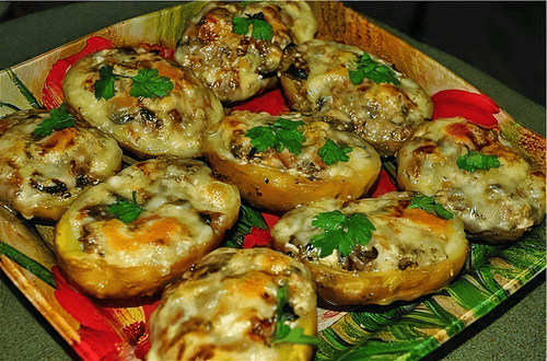 Лодочки ставим в духовку на 220-250 градусов и запекаем примерно полчаса.