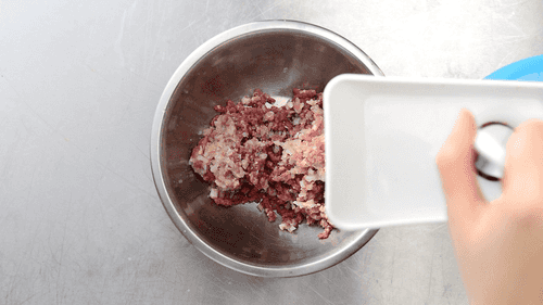 Мясо вместе с луком пропустить через мясорубку дважды, посолить.