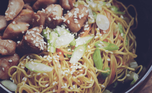 Яичная лапша с курицей и сладким перцем по-азиатски