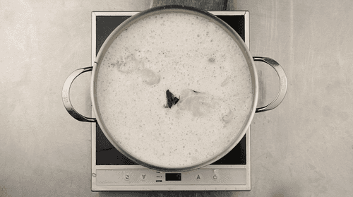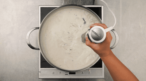 Тем временем в глубокую сковороду влить сливки. Упарить их в два раза, добавить крепкий рыбный бульон. Довести до кипения и кинуть водоросли. Снять с огня и дать настояться. Соус должен быть насыщенным, концентрированным, потому что у зубатки нет яркого характерного вкуса, но она может его впитать.