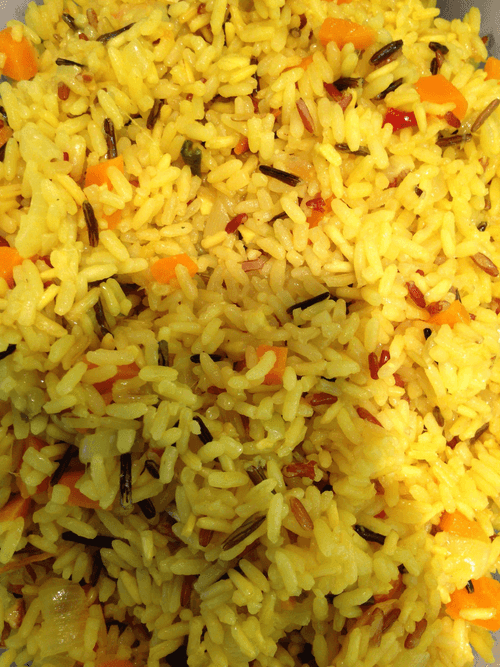 Готовый рис посыпаем мелко нарубленной кинзой и подаем.
