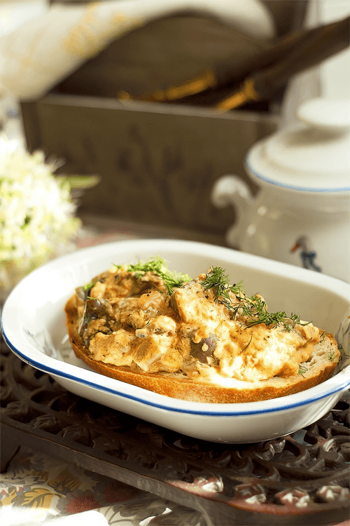Выложить сметану с мукой к баклажанам и тушить еще десять минут. После блюдо можно выкладывать в тарелку, а можно подавать и на гренках.