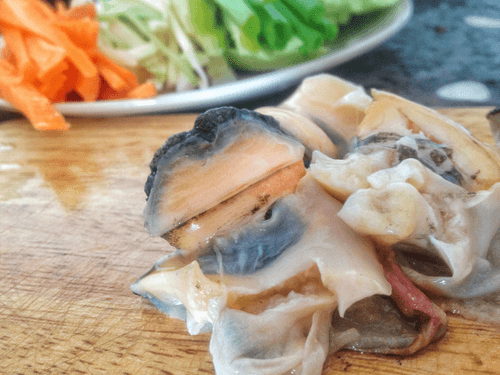Промываем рапаны. Нарезаем на небольшие кусочки