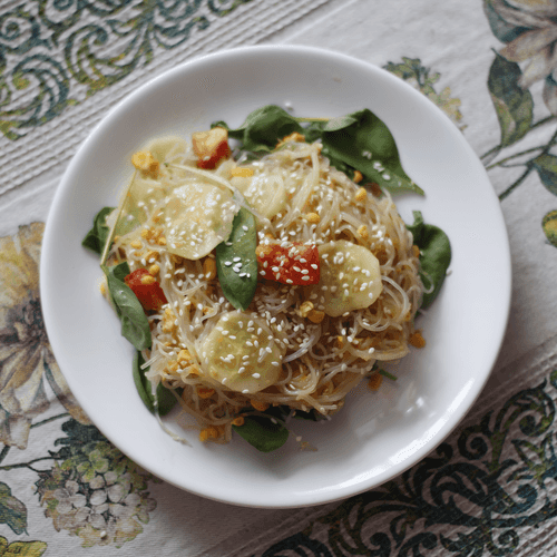 Стеклянная лапша с кукурузой и имбирным соусом