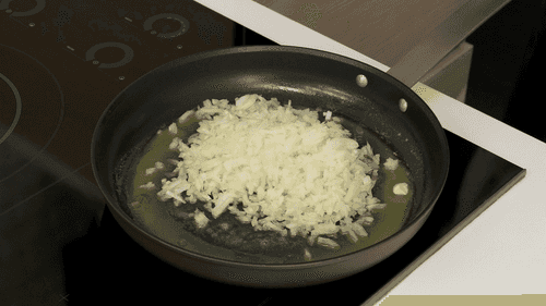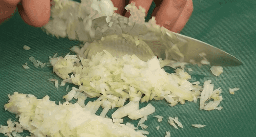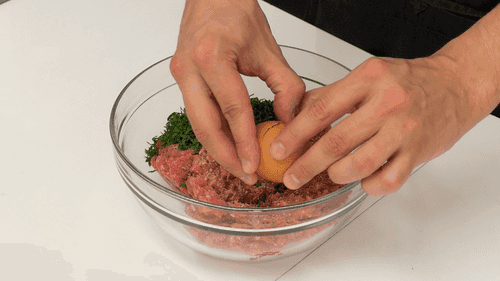 Смешать лук с фаршем, хлебом, яйцом и измельченной петрушкой до однородной массы. Приправить солью, перцем и мускатным орехом.
