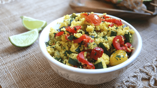 Кускус с овощами и зеленью — это ароматное блюдо марокканской кухни, которое сочетает в себе нежность кускуса и свежесть овощей. Исторически кускус был основным продуктом питания в Северной Африке, его готовили в традиционных глиняных горшках и подавали с мясом или овощами. В этом варианте кускус приобретает золотистый оттенок благодаря куркуме, а сочные овощи, такие как цукини, сладкий перец и помидоры черри, придают ему яркость и насыщенный вкус. Легкая острота чеснока и свежая петрушка добавляют нотки пикантности. Это универсальное блюдо подходит как для повседневного ужина, так и для праздничного стола, а его легкость и насыщенность делают его отличным выбором для здорового питания.