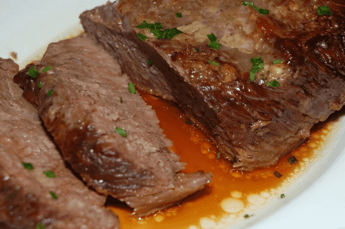 Даем воде закипеть, а затем кладем в нее кусок мяса, вымоченный в уксусе, и варим до готовности.