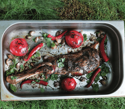 Добавить к баранине тимьян и можжевельник. Залить мясо горячим вином, Закрыть крышкой или плотно затянуть форму фольгой. Поставить в духовку на 4 часа. За это времятолько один раз перевернуть мясо. Баранина в результате немного отходит от костей и получается нежной и мягкой.