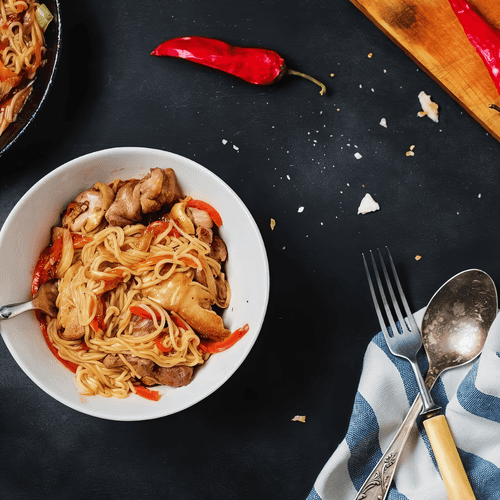 Рисовая лапша с уткой и перцем