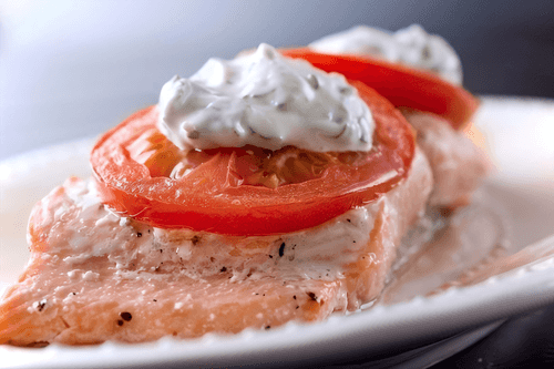 Горбуша, запеченная в сметанно-грибном соусе