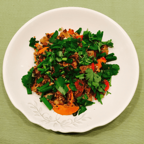 Киноа со свежими овощами — это легкий и питательный салат, сочетающий в себе яркие вкусы и свежесть натуральных ингредиентов. Киноа, известная как древнее суперзерно, пришла к нам из Южной Америки и ценится за свою питательность. В данном рецепте она прекрасно дополняется сочными помидорами, сладковатым красным перцем и ароматной кинзой, создавая гармоничный баланс вкусов. Зеленый лук придаёт легкую пикантность, а ягодный уксус добавляет освежающую кислинку. Это блюдо можно подать как гарнир к мясу, рыбе или птице, а также насладиться им в качестве самостоятельного вегетарианского блюда. Его легкость и польза делают его идеальным выбором для здорового питания.