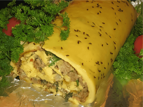 Сырно-мясной рулет с тмином