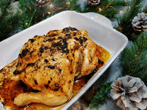 Курица целиком в духовке — это классическое блюдо европейской кухни, которое сочетает простоту приготовления с богатством вкуса. Сочная, ароматная, с золотистой корочкой, она становится украшением любого стола. Исторически запеченная курица была символом домашнего уюта и праздничного застолья. Маринад из чеснока, базилика и паприки придает мясу насыщенный вкус с пряными нотками, а запекание делает его невероятно мягким. Это блюдо идеально подходит как для семейного ужина, так и для торжественных случаев. Подавать можно с печеными овощами, картофелем или свежими зелеными салатами, дополняя вкус легким вином или натуральными соусами. Курица в духовке — это гастрономическая классика, проверенная временем.