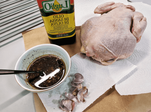 Промыть и обсушить курицу бумажными полотенцами.