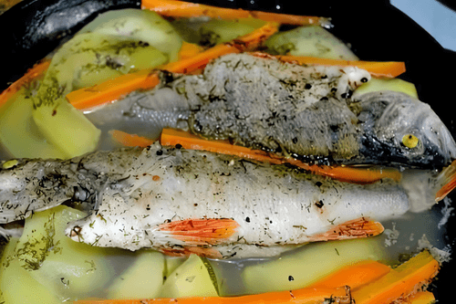 Варёные окуни — традиционное блюдо русской кухни, которое сочетает в себе простоту приготовления и насыщенный вкус свежей речной рыбы. Этот рецепт уходит корнями в древние традиции рыбной ловли, когда рыбу готовили в ароматном бульоне с кореньями и специями. Нежное мясо окуня, пропитанное ароматами лаврового листа, черного перца и уксуса, приобретает удивительную сочность и лёгкую кислинку. Лимонный сок придаёт свежесть, а сливочное масло делает блюдо более насыщенным. Подача с горячим картофелем, посыпанным петрушкой, создаёт идеальное сочетание вкусов. Это блюдо прекрасно подходит для лёгкого обеда или ужина, сохраняя аутентичность русских гастрономических традиций.