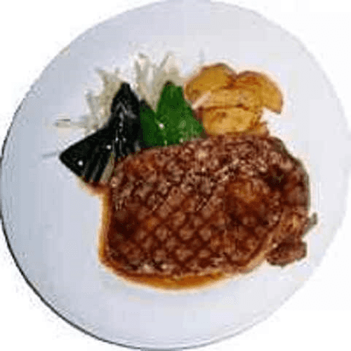Бифштекс натуральный из вырезки — это квинтэссенция американской кухни, где главное — чистый вкус высококачественного мяса. История этого блюда берет начало в традициях ковбойских стейк-хаусов, где жареный бифштекс был символом сытного и простого питания. Сочный, нежный, с легкими нотками перца и соли, он прекрасно раскрывает вкус молодой телятины. Жареный на раскаленной сковороде, он приобретает аппетитную корочку, сохраняя внутри сочность. Подается с пикантным хреном, горчицей, хрустящим картофелем-фри и свежим зелёным салатом, создавая идеальный баланс текстур и вкусов. А классическая глазунья, уложенная поверх горячего бифштекса, добавляет насыщенности и делает блюдо еще более уютным и домашним. Этот бифштекс — настоящий праздник для любителей простого и честного мясного вкуса.